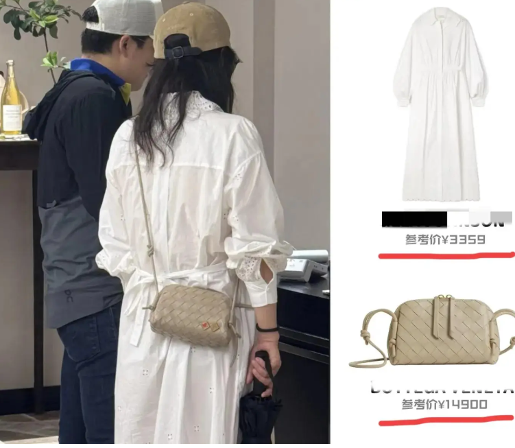 她穿着一条白色连衣裙,这条裙子呢,乍一看就像个灰姑娘,质感有点差,可实际上它是个隐藏的小贵族,是名牌货呢,售价大概 3300 元,这可是普通人大半个月的辛苦工资呀!