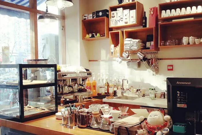 这家咖啡馆远离市区喧嚣,坐落在一条安静的小路旁边,环境装修的很简约,安静朴素,平易近人,喝着咖啡聊着咖啡、吃块甜点、晒晒太阳,慢时光也很美。