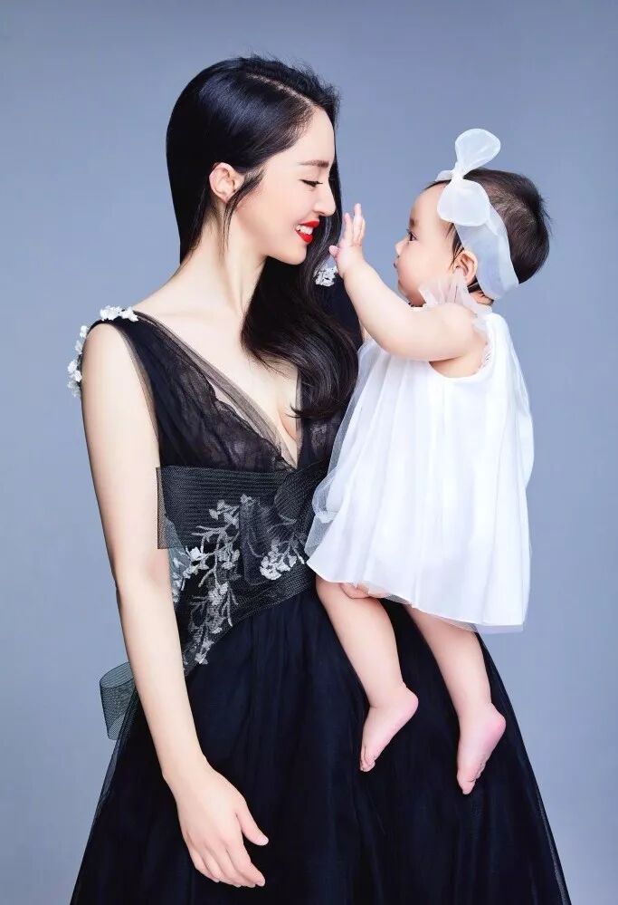 和闺女小酒窝的合照,也一贯遵从了干净利落的穿衣风格,十分温婉。