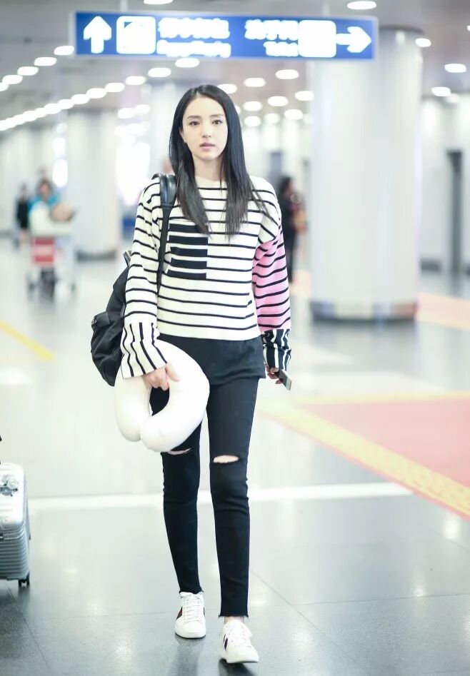 机场街拍素雅协调,完全凸显了脸有多好看。