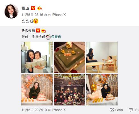 顺着微博就翻到了他为妻子董璇庆生的照片,他亲昵的称董璇为“胖球”。