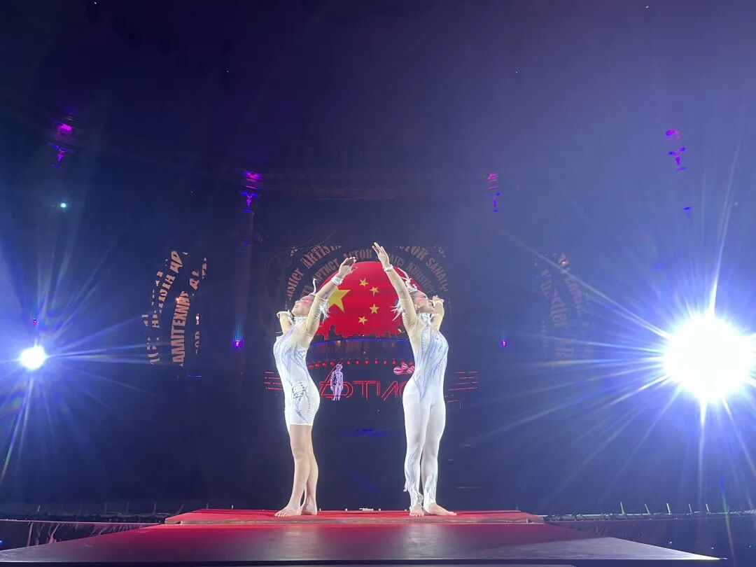 昨天(9月10日),在俄罗斯尼库林马戏场颁奖仪式上响起了“中国湖北黄冈浠水杂技团”的名字,荣获国际杂技大赛银奖第一名刘馨棋(15)岁、徐杨倩(16岁)两名小女演员的大名随之让世界知晓。