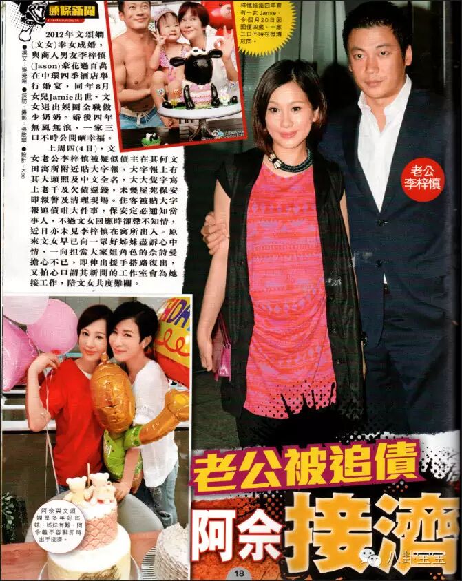 报道还提到,文颂娴自从结婚之后,生活素质非常高,养家的压力由老公一人承担,她就负责留在家里照顾孩子,有请佣人,但买菜做饭都由她亲力亲为。