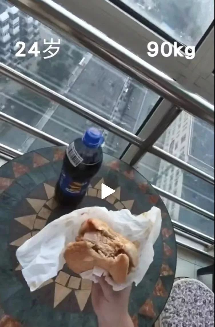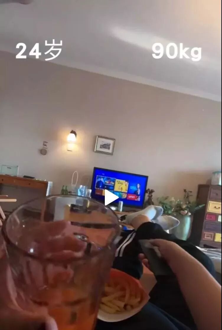 24岁的她,已经90公斤了,在还没进ICU之前,她常做的事情就是拿着薯条和果汁,躺着看电视。