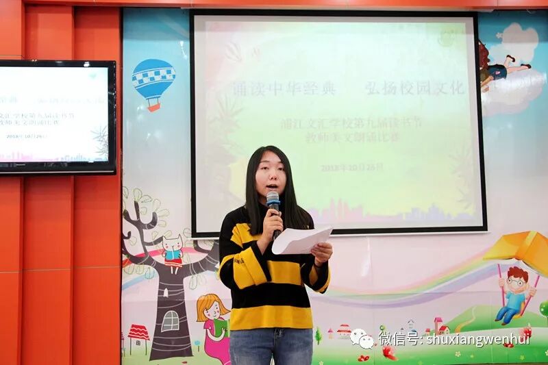 华夏源远流长的经典美文,是文化艺苑中经久不衰的瑰宝。为进一步激发教师读书热情,扎实教师诵读基本功,10月30日下午,我校全体教师齐聚一堂,隆重举行了“诵读中华经典,弘扬校园文化”浦江文汇学校第九届读书节教师美文诵读活动。