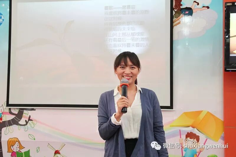 王媞、苏梅、杨晶晶、蔡丽华老师朗诵的《给友人》、《暮歌》、《你是人间的四月天》和《满脑子甜蜜的幻想》,以轻悠的音乐,柔美的情怀,带领我们走进诗人的心田,领悟诗人心中的情感。