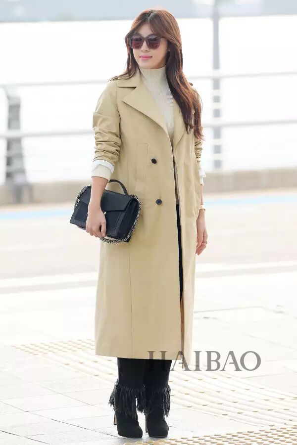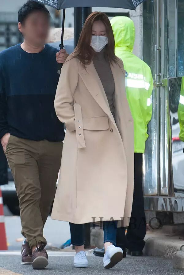 郑秀晶11月13日韩国KBS电视台外明星街拍:身着MM6 by Maison Martin Margiela驼色长大衣