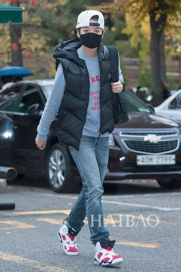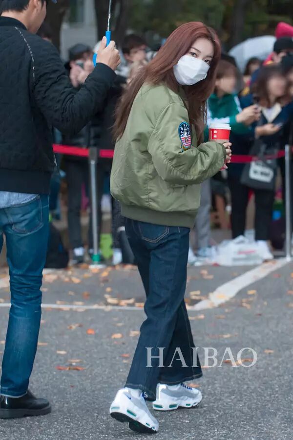 F(x)组合成员Amber 11月13日韩国KBS电视台外明星街拍:身着Aftertwo MA-1飞行夹克