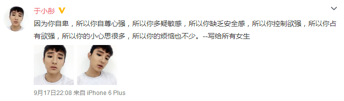 乍一看还以为是啥鸡汤文!仔细一看,哎呀妈,于小彤是喝大了咩?