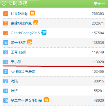 这一番讨论下来,于小彤再次因为恋情上了热搜,成功挤掉“女作家冷冻遗体”!干巴爹!