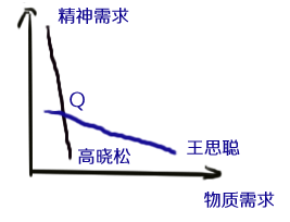 比如高晓松想要追妹子,满足妹子的精神需求可能远远超过满足她的物质需求;而王思聪就正好相反,满足的更多的是妹子的物质需求,而非精神需求。