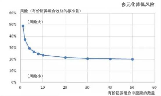 这张图表明:股票组合的风险随着股票数量的增加而大大的降低。