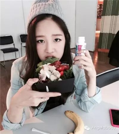 图中朴宝蓝手里拿的饭盒里放着的就是她的每日食谱:鸡脯肉沙拉+减肥甜味饮料。这个食谱是体育馆馆长亲自制定的严格控制饮食减肥的秘诀。是不是看上去就觉得很健康呢?