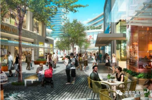 渥列治中心重建的2014年第二版核准版本购物中心设计效果图(图片来自Westbank Projects Corp./Henriquez Partners 建筑事务所)