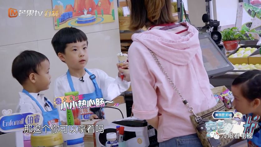 但是孩子们应对的方法则是真实的,杨阳洋担心冰激凌融化,举着冰激凌站到了冰柜边上,其他孩子也表现出了责任感。