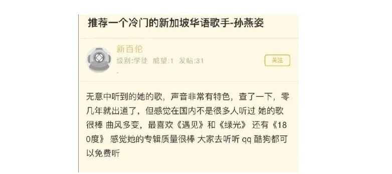 一条评论孙燕姿为“冷门歌手”的帖子竟然掀起了轩然大波。