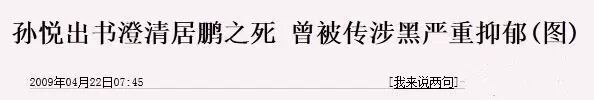 相传居鹏的死与黑势力的介入,被当街打死,孙悦也收到牵连,社会舆论也谣传孙悦涉黑害死了他。关于两个人关系的质疑再次升温。