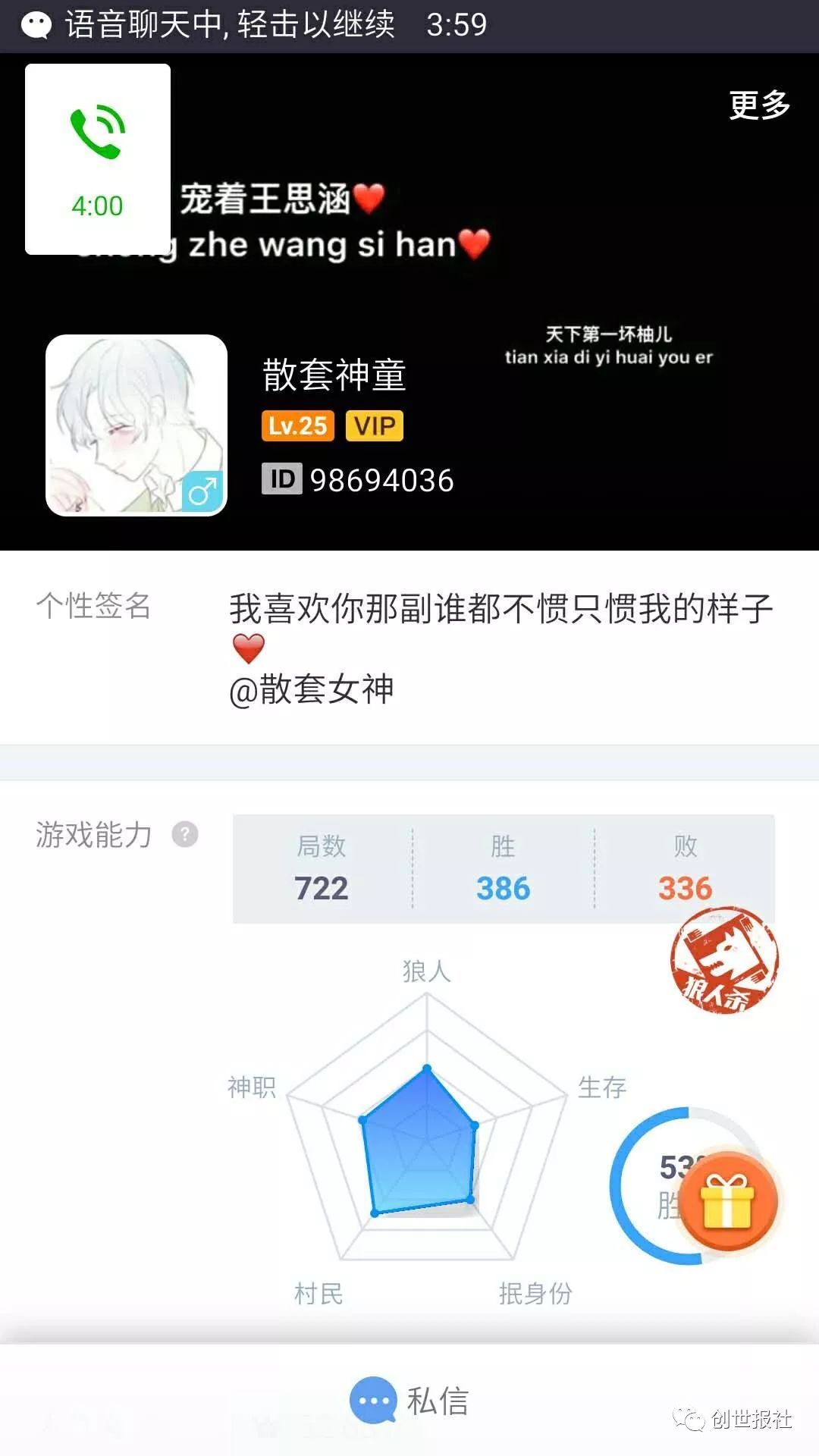 散套神童留: 玩狼人杀也有些日子了,让我收获了挺多,我在乎的是身边的兄弟、值得尊敬的师父、我唯一的媳妇还有就是你,你一直帮助我,在我挨揍的时候出来立场我,感谢你的陪伴!这首另类我自己写的,写的不怎么好第一次写另类词送给你,时光不老,散套神童陪你到老,我们不散。