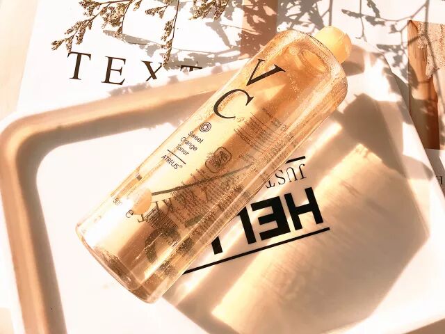 包装简约高级,瓶身透明能够看到淡淡橘色的水,打开这瓶化妆水、一股清新的橘子味,很清香。