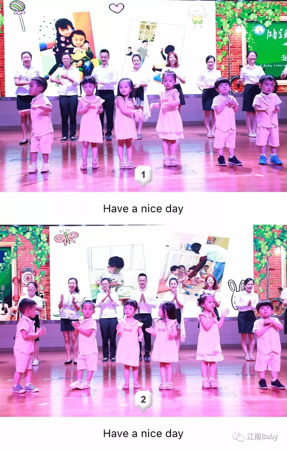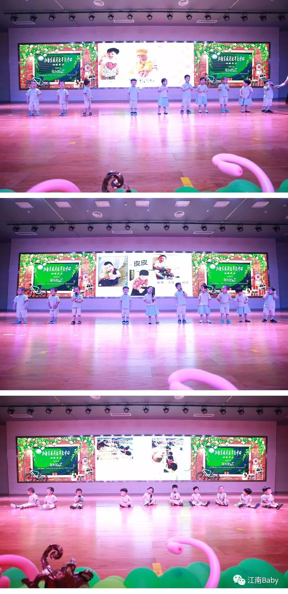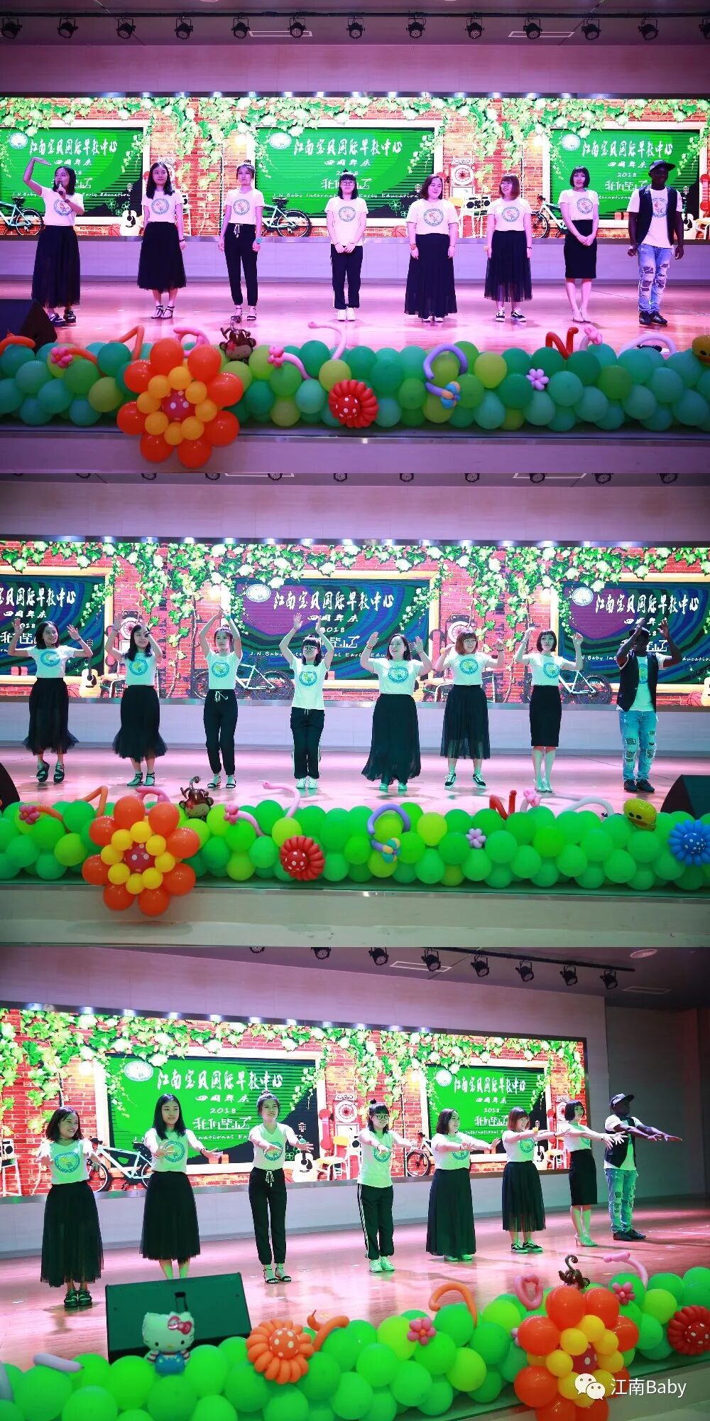 欢迎各位宝贝和家长,让我们正式进入江南宝贝的毕业生日大派对吧~欢迎主持人:Sunny老师、Alice老师及Eben老师闪亮登场!一起跟着江南宝贝所有老师们动起来,带来精彩的开场舞!