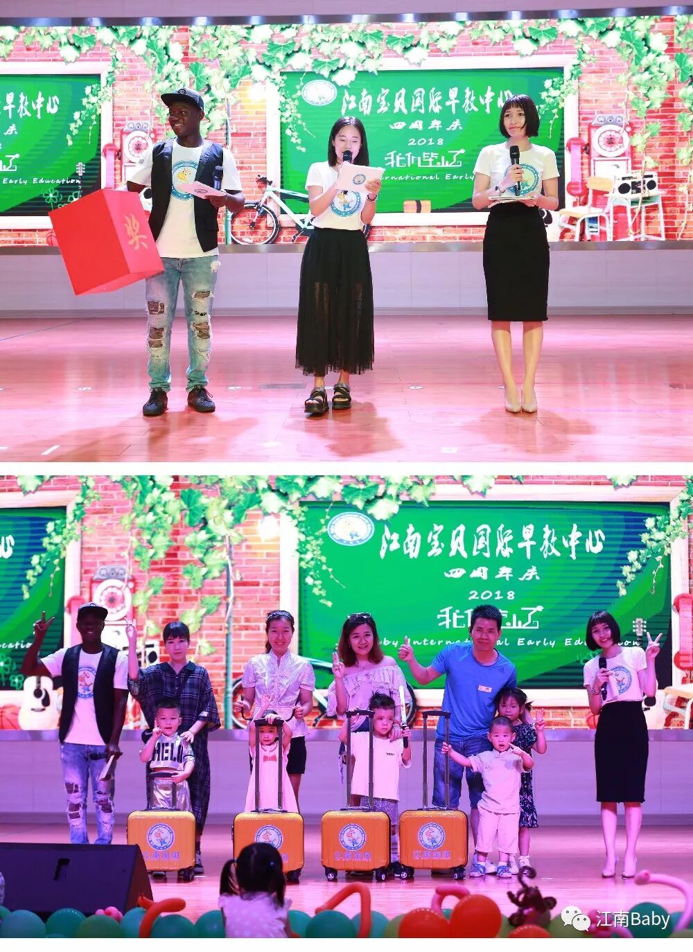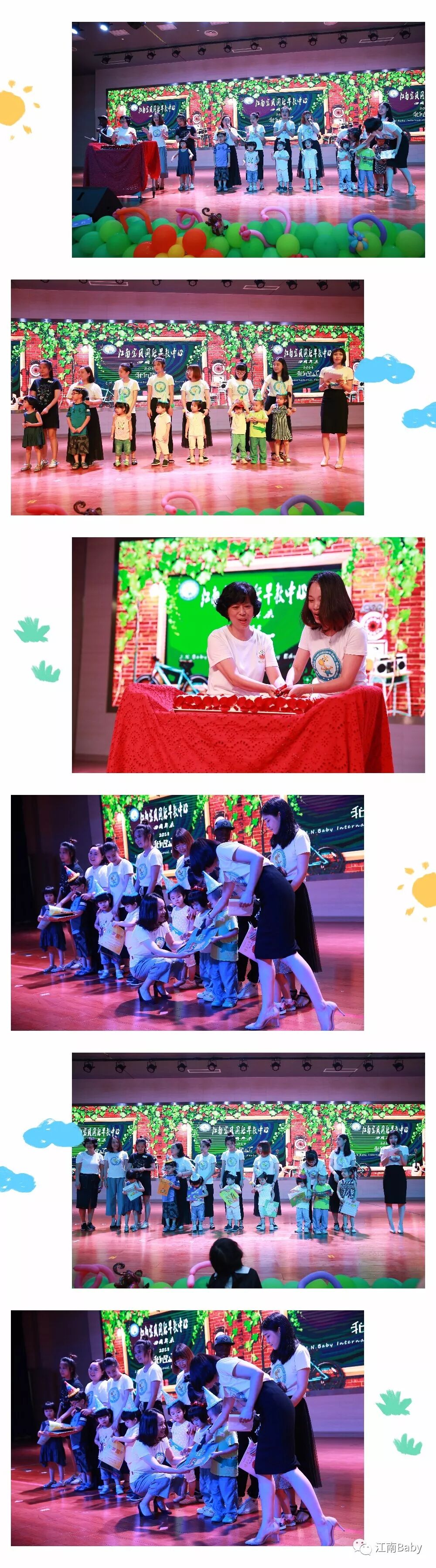 七月生日的宝贝,让我们和江南宝贝一起过生日吧!2018是江南宝贝四周岁的生日,也是江南宝贝和童乐园合作的第一年,唱完生日歌,邀请江南宝贝创始人Penny和童乐园代表刘老师一起为宝贝们切蛋糕、送礼物!生日快乐!更特别邀请到江南宝贝的“忠实粉丝”包雅宁、包雅珞妈妈上台致辞。谢谢!