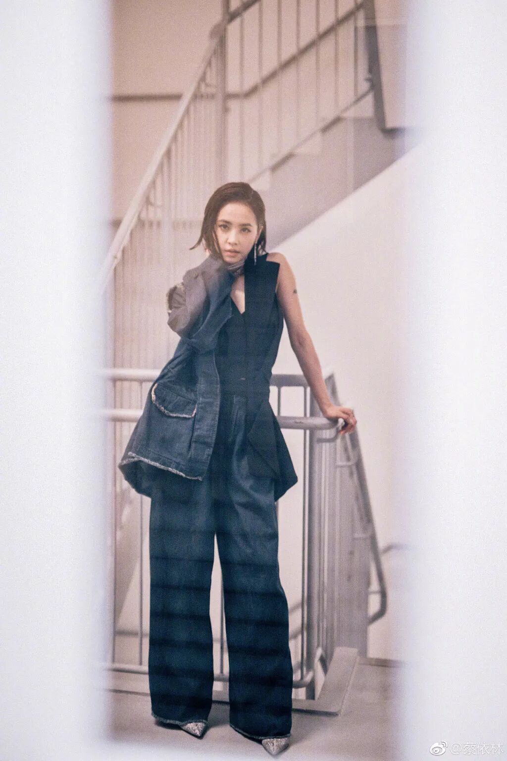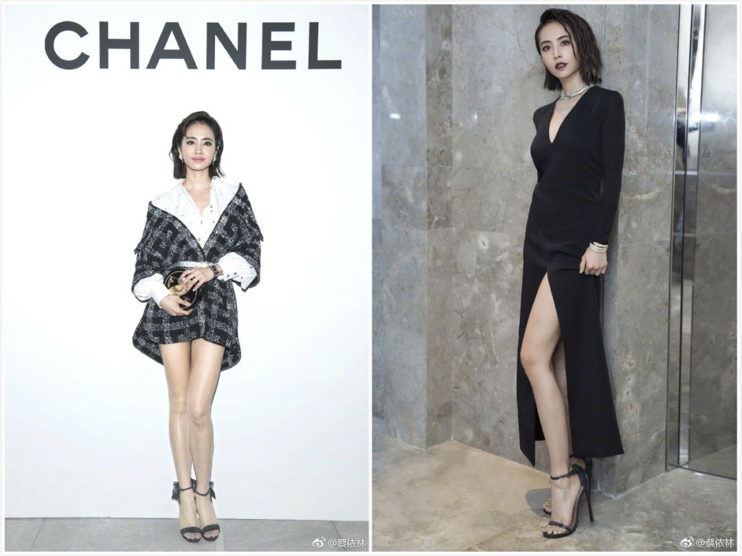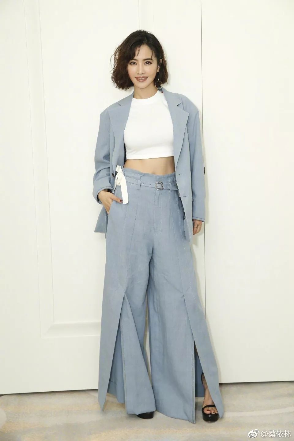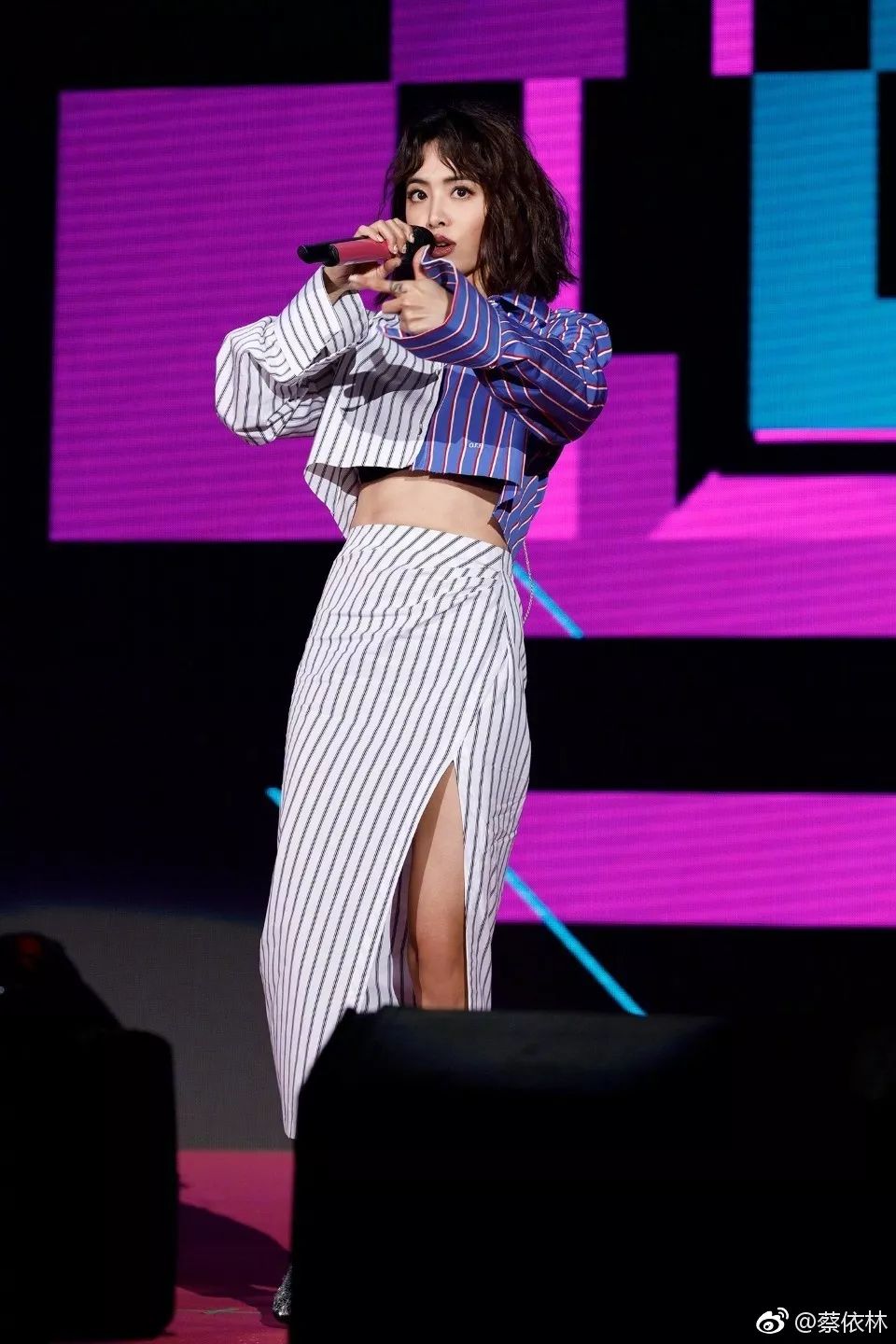 从蔡依林的搭配来看,穿高跟鞋时一定要露腿。