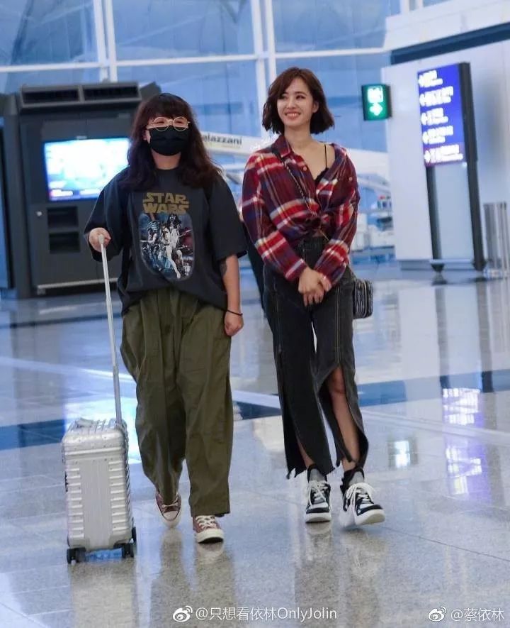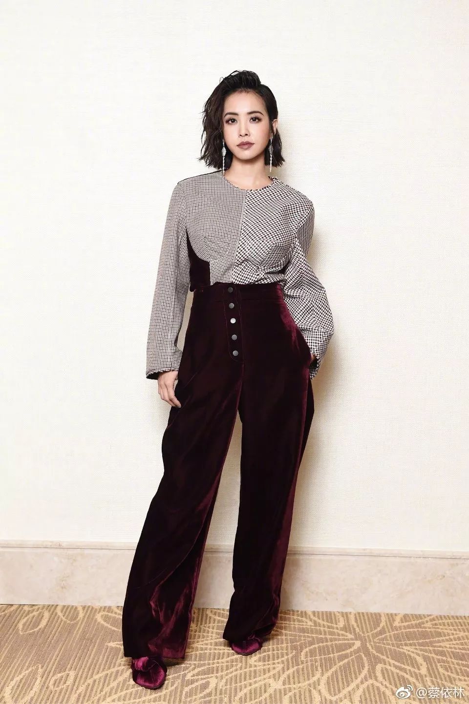 这种休闲款的阔腿裤本来比较难搭配,但是Jolin搭配一件露肩的格子衬衫,立马穿出感觉!