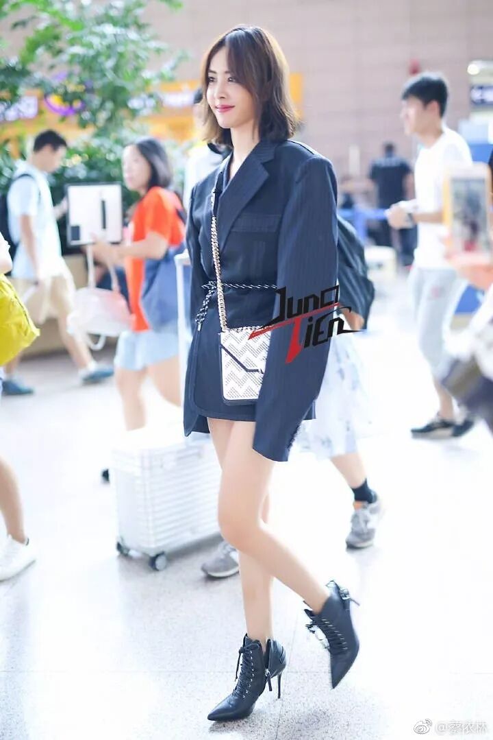 她官方身高158cm,可以说是矮个子了,但是她走起性感风也丝毫没有违和感。迷你裙和长靴的搭配不仅显高,还特别有女人味。