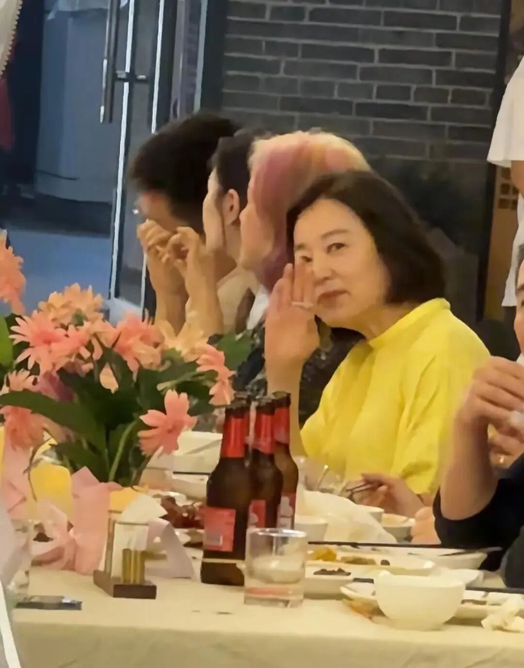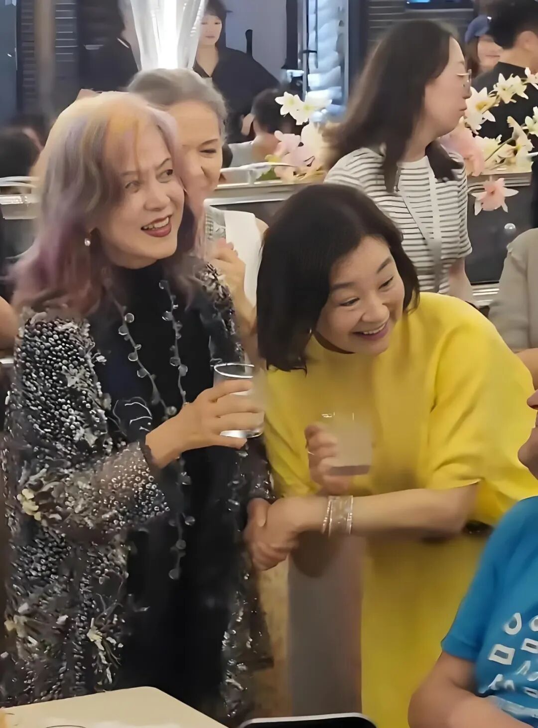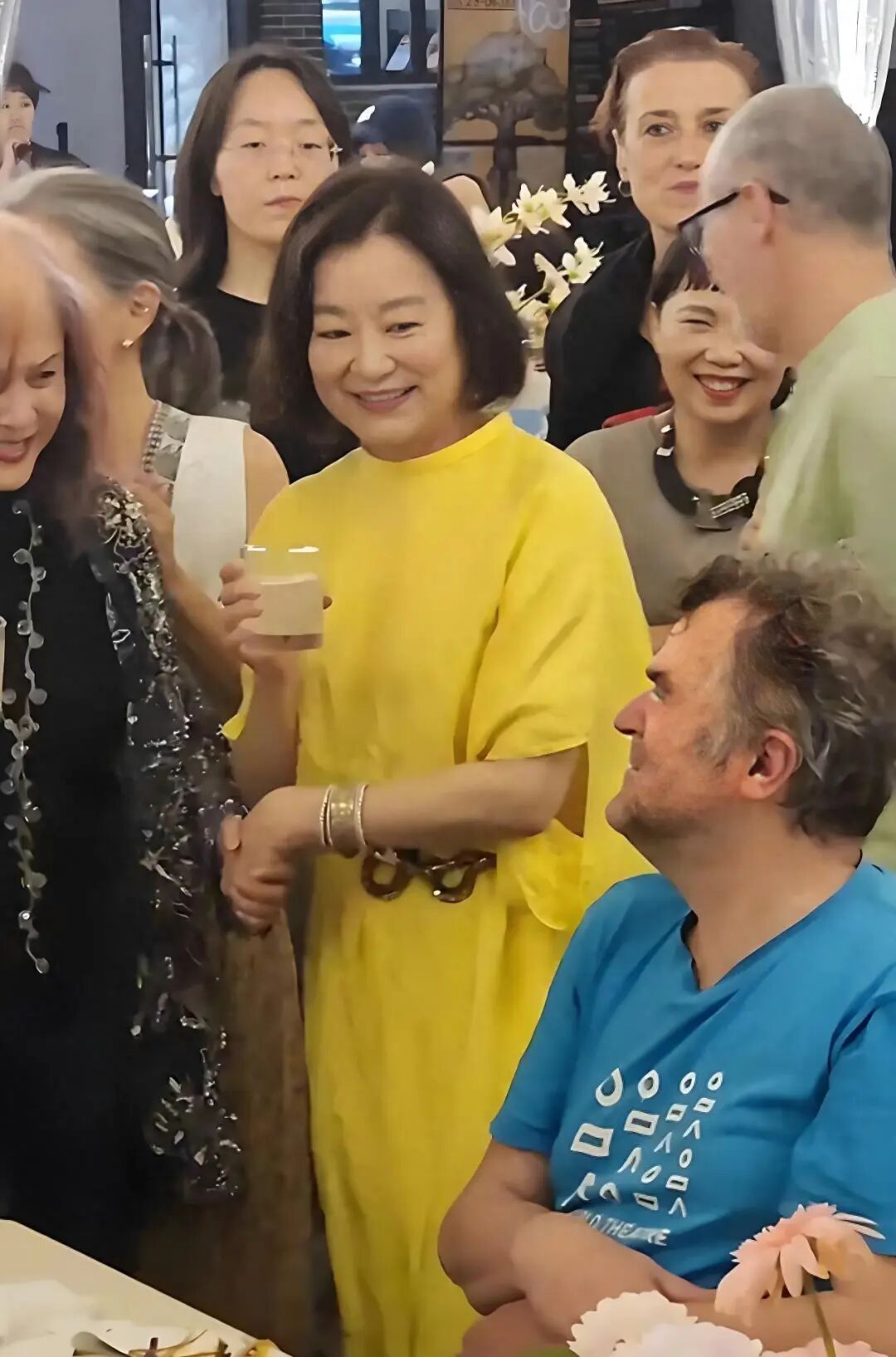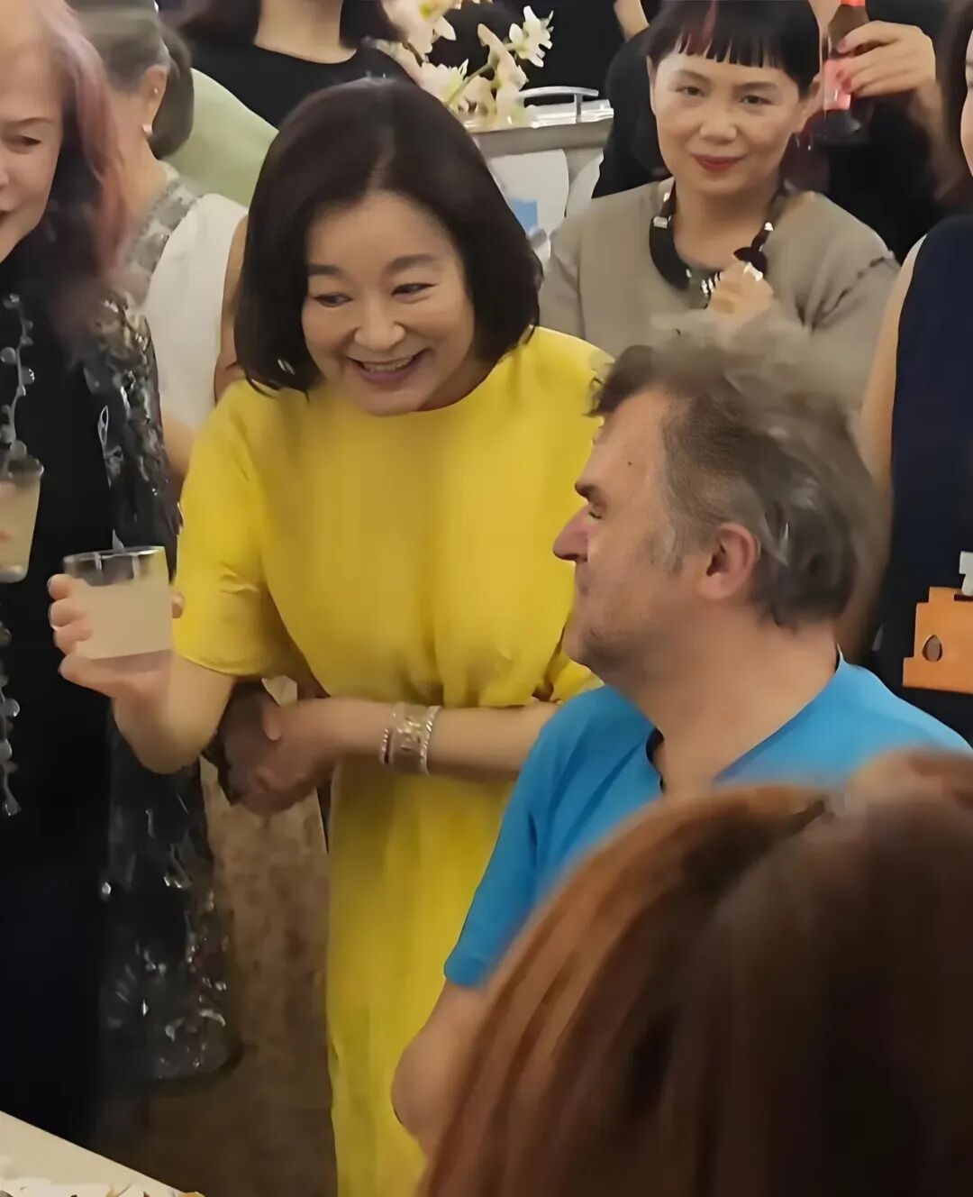 压轴晚宴,林青霞终于迎来属于自己的高光时刻。她穿一身黄某奢侈品牌裙子,圆润身材,配上银白短发,颈纹、松弛的皮肤一览无遗,但是笑容毫无掩饰,她与赖声川夫人丁乃竺挽着手入场,举杯畅谈戏剧艺术,她率先走到意大利导演皮普面前,用流利英语对他道:“生日快乐!”两人碰杯大笑,画面定格,皱纹里盛满欢喜。