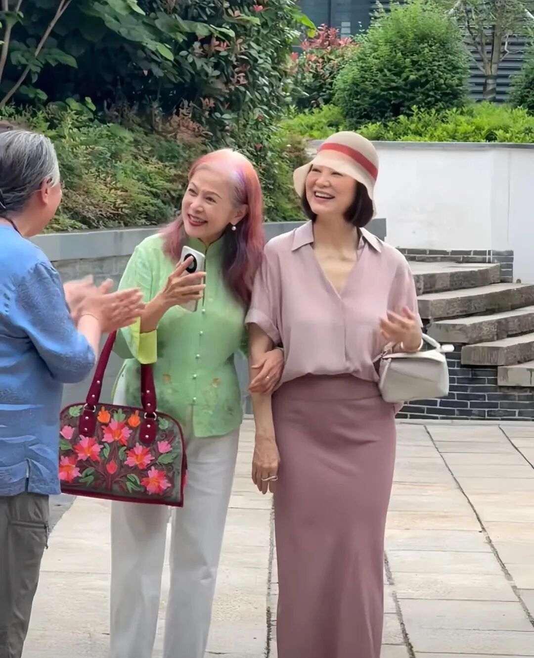 当年为了身材焦虑躲着镜头的姑娘,如今成了“自然老去”的代言人。她拎着名牌包去赶市集砍价,戴着草帽蹲在路边看戏,被路人认成“海清”只是淡淡一笑。网友扒出她40年前的“东方不败”,感慨万千:“皮囊可以老旧,但骨子里的贵气始终不会褪色”。