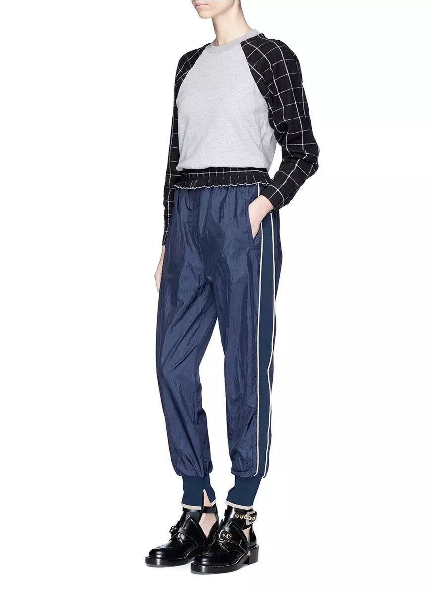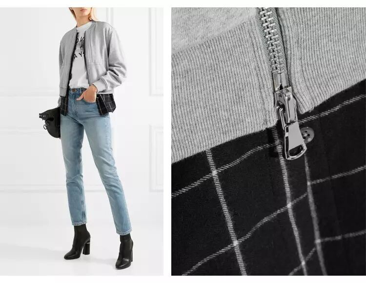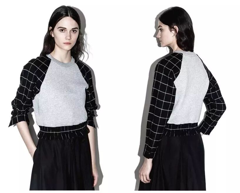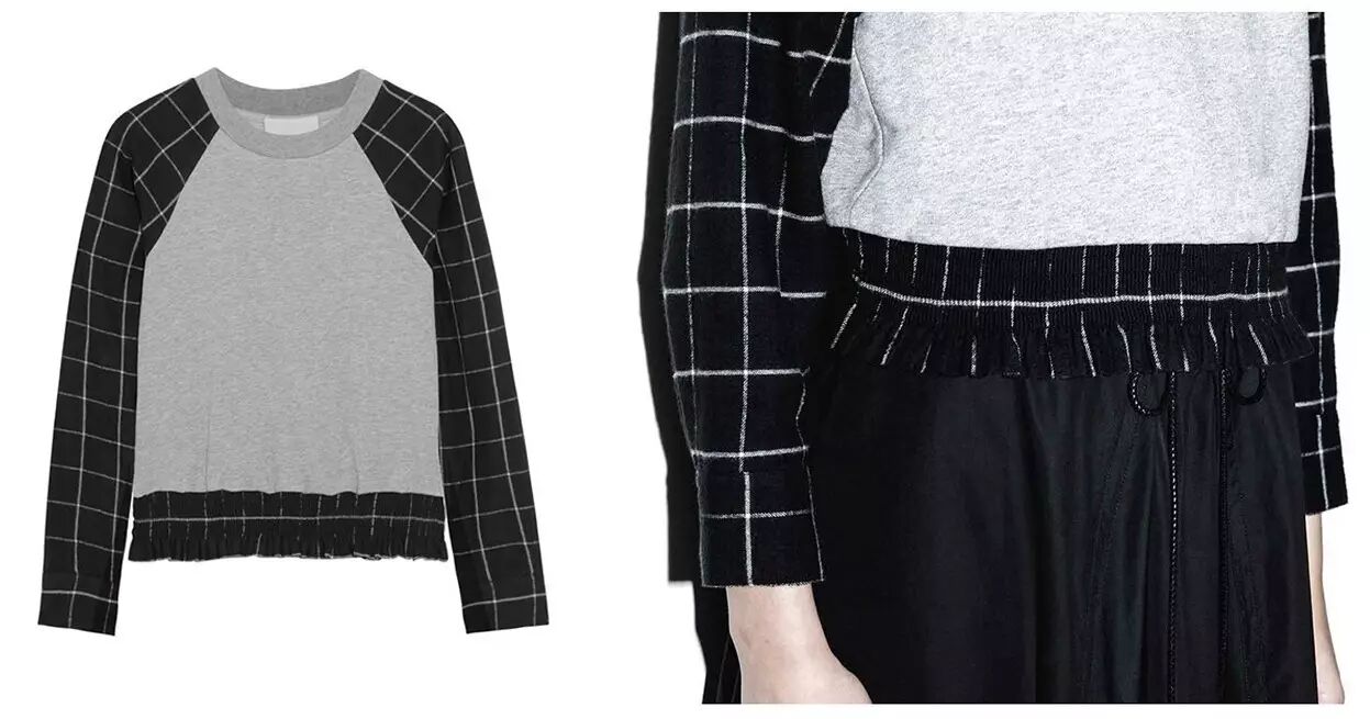 这款卫衣以浅灰色鱼鳞布拼接黑色格纹面料,塑造出色彩与触感的层次变化,充满摩登玩味感觉。100%棉面料,柔软舒适的触感,罗纹圆领和松紧下摆将不同元素糅合得天衣无缝。