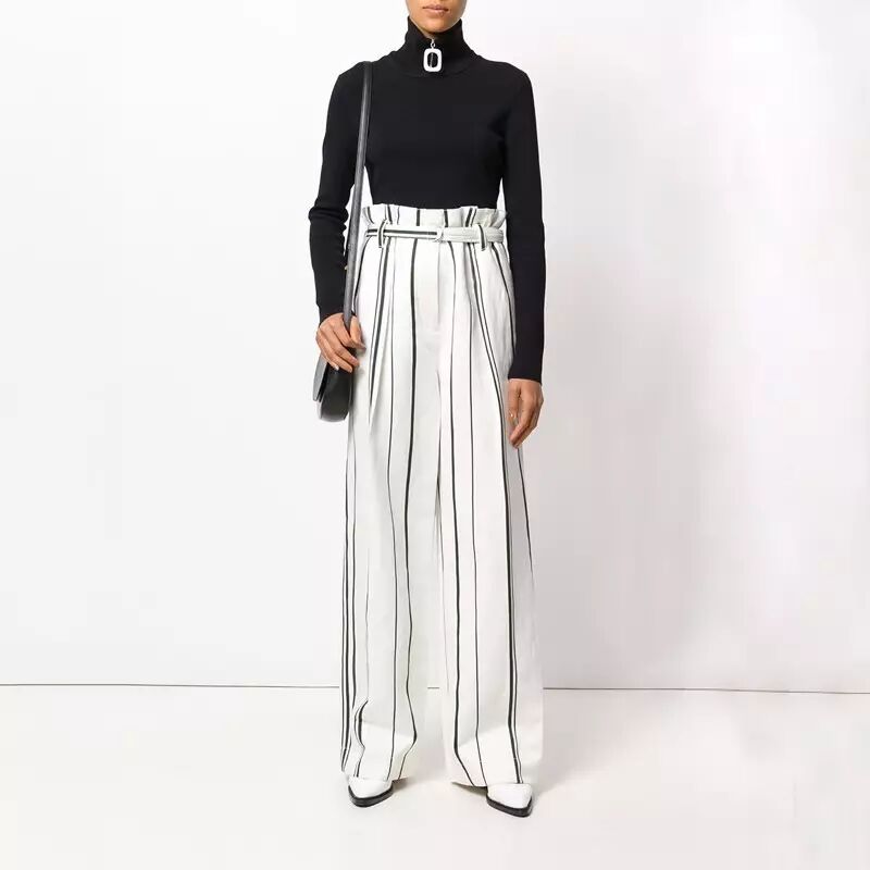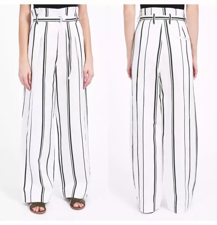 这是一条自带气场的阔腿裤,完美诠释什么叫脖子以下全是腿。面料采用棉亚麻布混合而成,粗犷的垂直条纹,别致的纸袋腰身,宽大的阔腿轮廓,随意搭配白衬衫就很美,配上一双细高跟,分分钟打造女王气质。