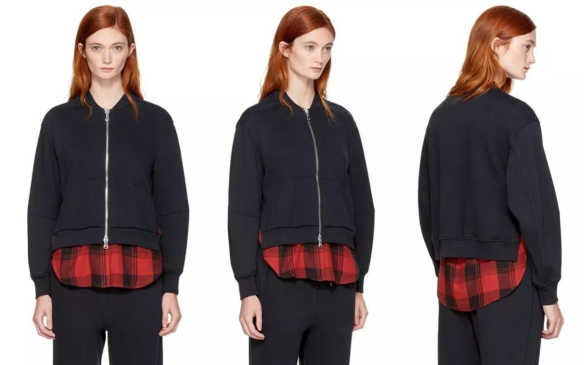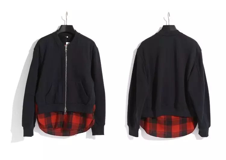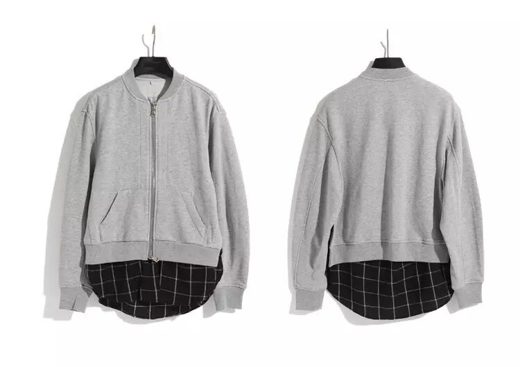 这款飞行员夹克让你轻松帅气地驾驭层接式造型。灰色款采用纯棉平纹针织面料制成,并内接蓝黑色和白色格纹法兰绒拼接料,黑色款则拼接红黑法兰绒格纹,营造出与衬衫层搭的效果。