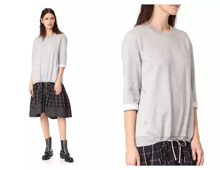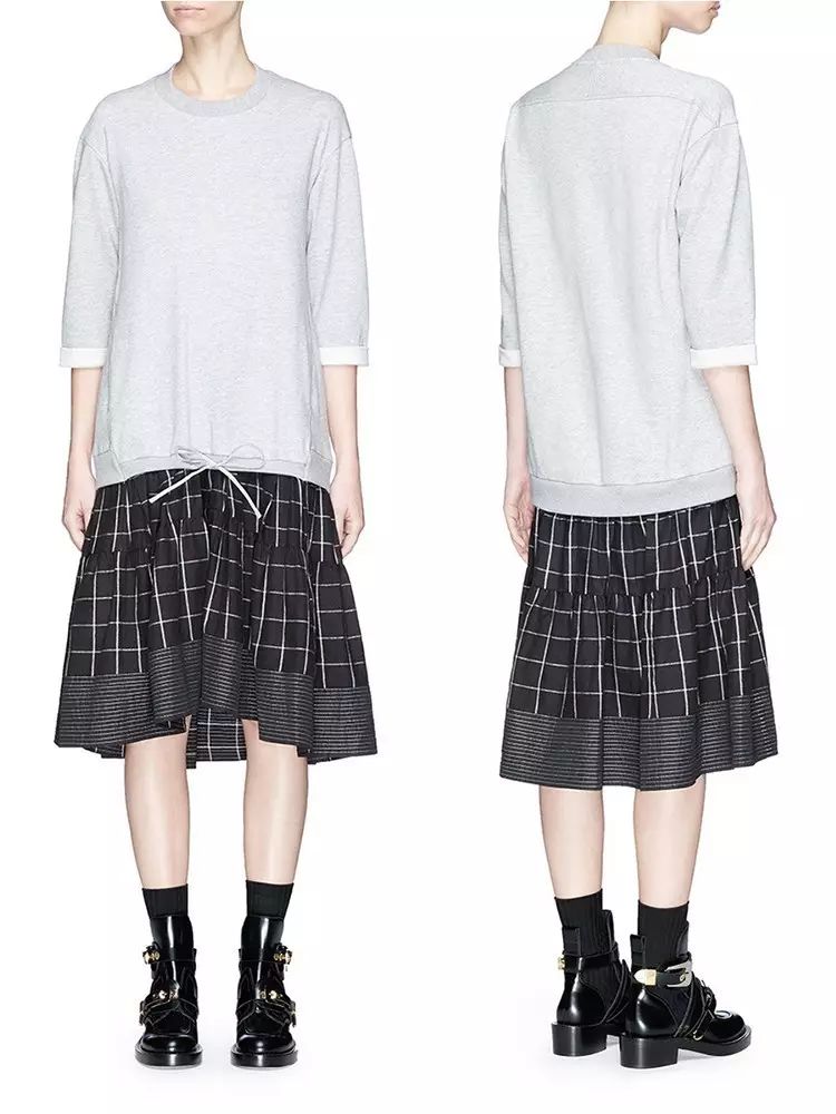 (菲利林)带来这款充满休闲运动风感觉的连衣裙,在鱼鳞布卫衣的基础上拼接格纹裙摆,打造出仿两件式效果,别具摩登玩味气息,是打造个性街头造型的理想单品。2色可选,100%纯棉面料,时尚翻边五分袖,腰部抽绳设计,无时无刻不在体现女性帅气的一面。