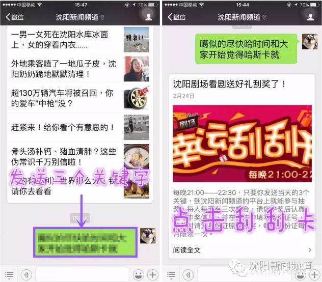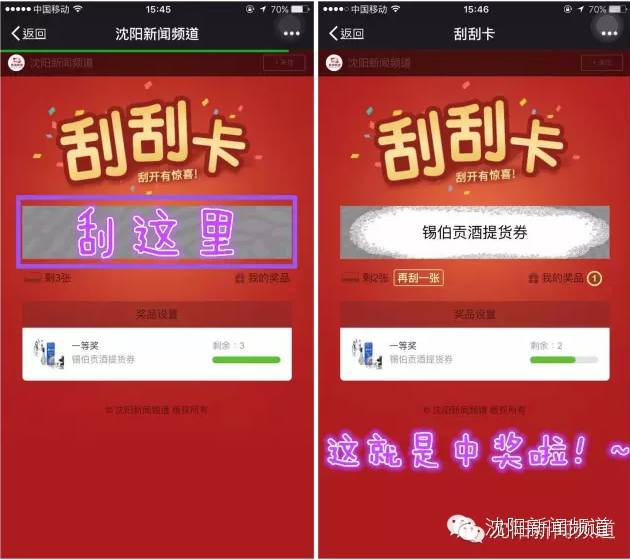 2、将电视屏幕上先后出现的“三个通关密码”连在一起(中间不加任何符号或空格),发送到“沈阳新闻频道”的官方微信平台。↑