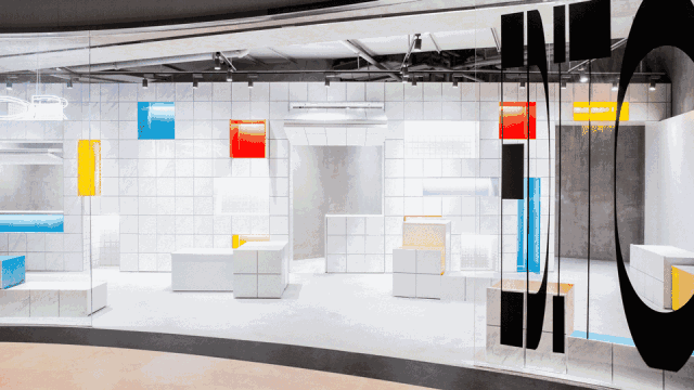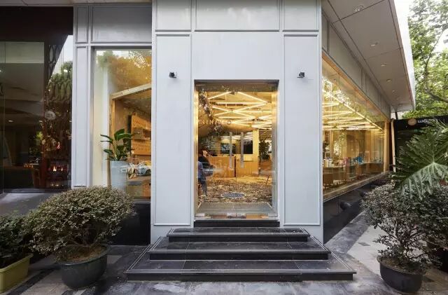 NININIO门店与上海东湖宾馆相连,东湖宾馆建于1925年,主楼是三层法式别墅。来到NININIO的客人一定会被店铺新颖前卫有趣的室内设计而眼前一亮。店铺面积达到150平方米,4米高的空间格局和3米高的落地玻璃幕墙。