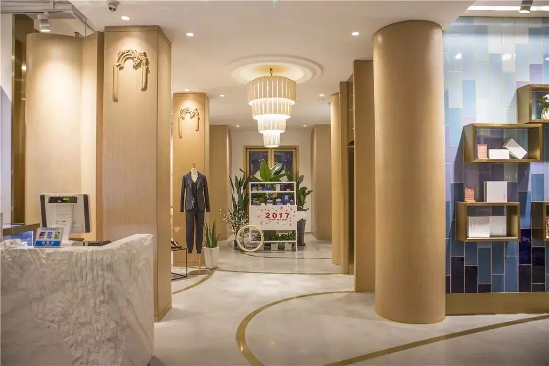 OOAK新天地新里店设计风格汲取孔雀石绿为主色调,材质上使用金属和丝绒的碰撞,营造出时髦摩登的格调,演绎OOAK的现代时尚风格。
