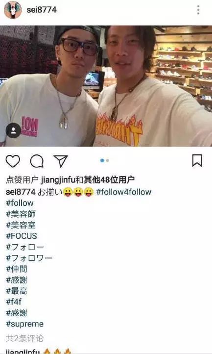 比如这位男子的ins中,不仅有跟蒋劲夫的合照。