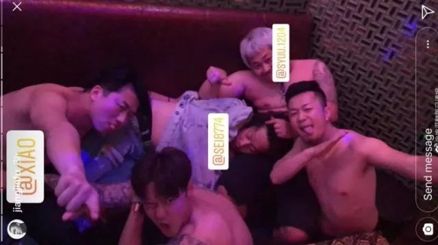 视频的截图中大家都应该是喝高了,蒋劲夫也是裸露着上半身,手臂上的纹身呢也十分引人注目。
