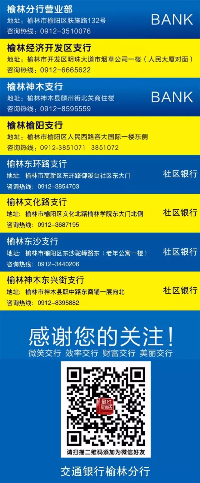 更多精彩活动请关注“交通银行榆林分行最红星期五”微信号:Bank521_yl