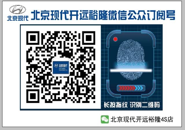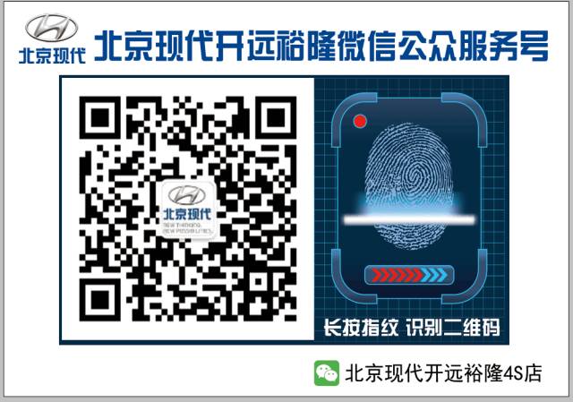 北京现代•开远裕隆4S店官方微信,欢迎大家扫一扫二维码或长按指纹识别二维码加入到我们的行列哦。最新的车辆行情、活动和保养知识第一时间知晓!