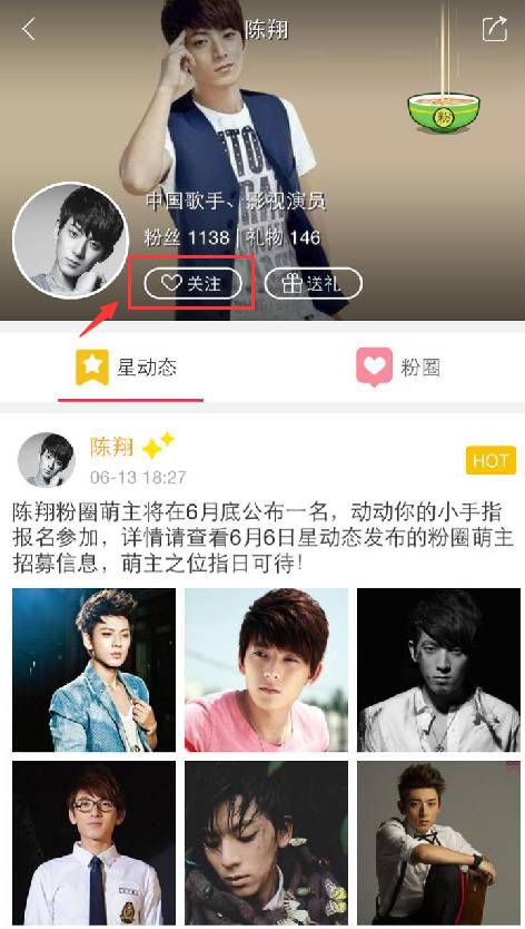 Step 3,晒照完毕也不要忘了关注陈翔主页哦,牙牙会和大家第一时间分享陈翔的星动态,还有很多香橙宝宝在等着你呢!