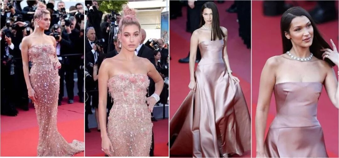 除了黑白之外,裸色也是相当安全的颜色,既不过于张扬,又显得优雅端庄。果不其然,在戛纳红毯上,两位96年的模特都选择了裸色的礼服。
