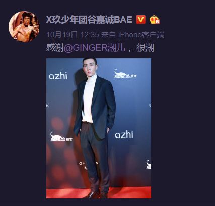 人帅话不多非常适合用来形容谷嘉诚,还记得GINGER NIGHT潮之夜小谷的微博: