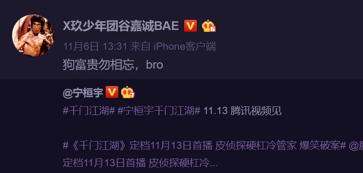 对待兄弟,祝福朋友,谷嘉诚微博画风都是大写的耿直and言简意赅: