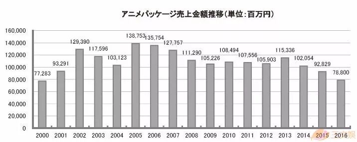 动画的传统盈利支柱、BD碟的销量一直下滑,从上千亿跌落到788亿日元
