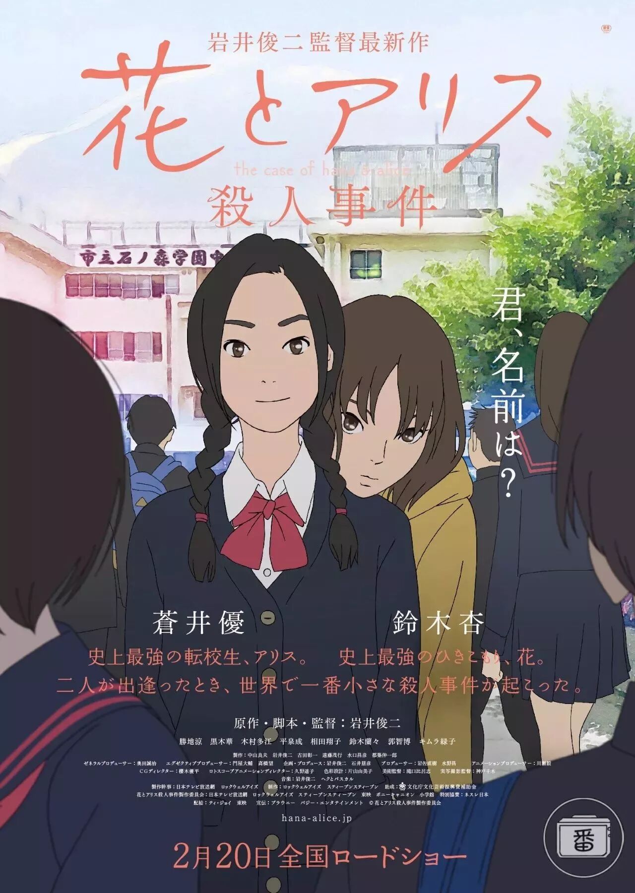 2015年,改编自岩井俊二小说《花与爱丽丝》的动画电影《花与爱丽丝杀人事件》上映。这部真人影视改编成的动画电影,自脚本完成至上映间隔十年之久。