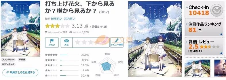 左图为“雅虎!映画”上,《烟花》的评分(五分制)