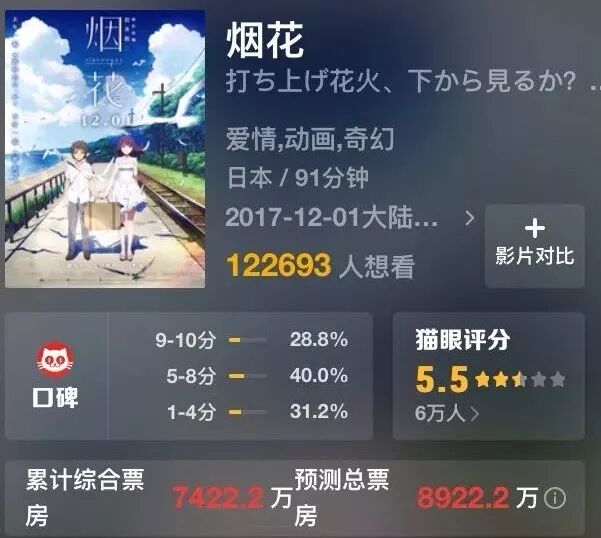 2017年,日本8月,中国12月,动画电影《烟花》对标《你的名字》欲再创奇迹。