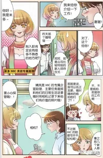 而漫画的开头也相当有趣,我们读者的视角是从女主作为一个实习助理开始的,这样既能完美展现mic在观众背后的努力,也能更好地讲述mic成员之间的日常。